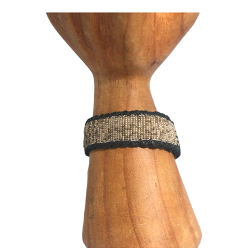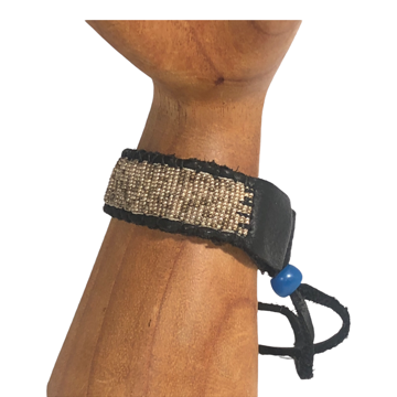 Antique mixed metal Silver Tone beaded bracelet sewn on black leather with sliding pony bead for adjustable closure. Bracelet is done on a loom wit...