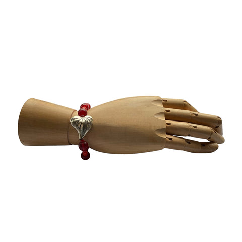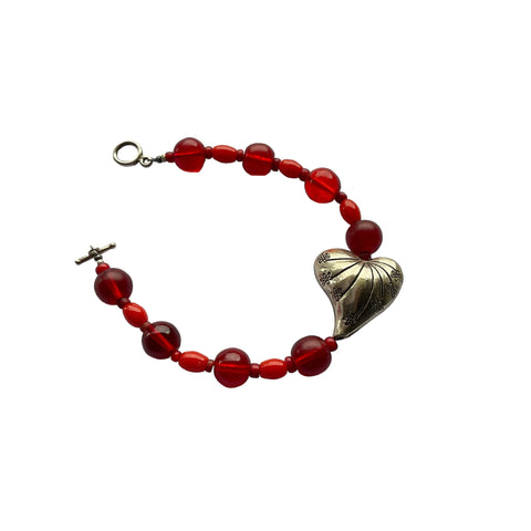 Love is a Big Heart Bracelet with antique glass beads and puffy sterling heart and  toggle clasp.  Red is for fire in the heart ❤️ Bracelet is 8 in...
