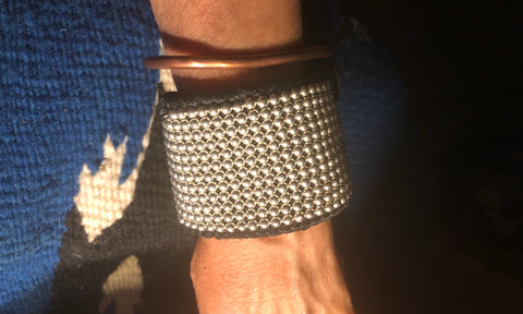 Large Sterling Silver Beaded Bracelet Cuff the beads have a sight patina on them. Material: 4mm round sterling silver beads, black leather, turtle ...